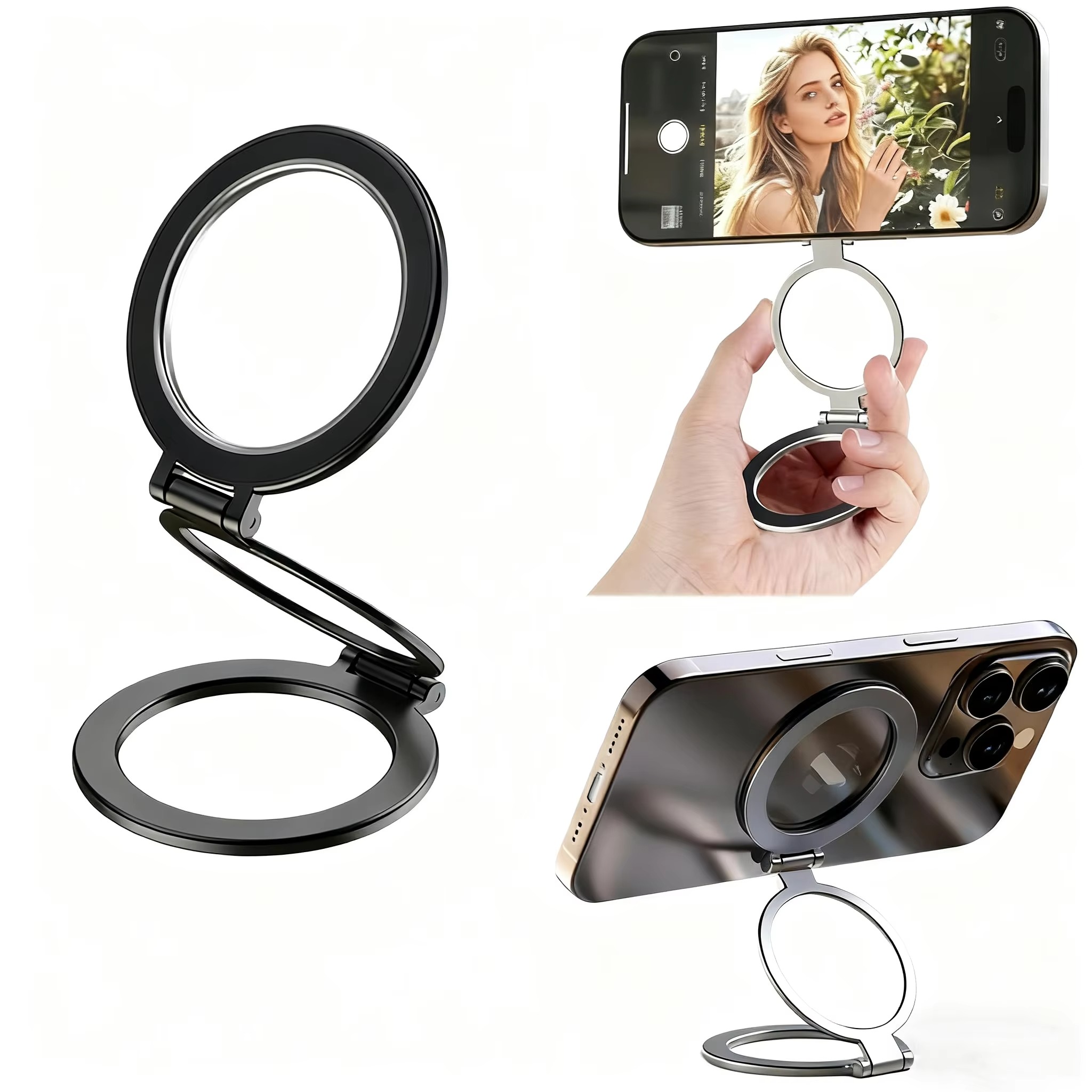 Compatible for MagSafe Phone Grip Holder, Dual-Sided Magnet Cellphone Stand Adjustable Metal Ring Phone Holder for iPhone 17 Pro